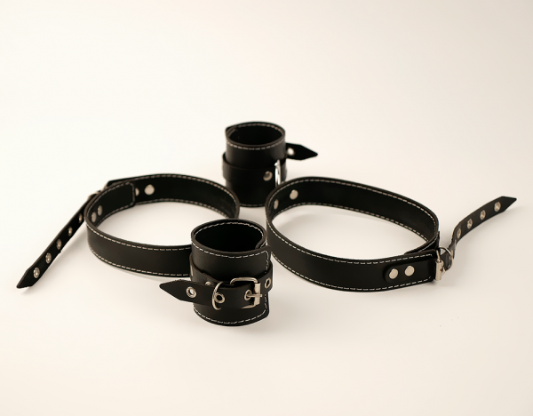 Выполнены стропы и наручники из натуральной кожи в черном цвете. Имеют регулируемые ремни