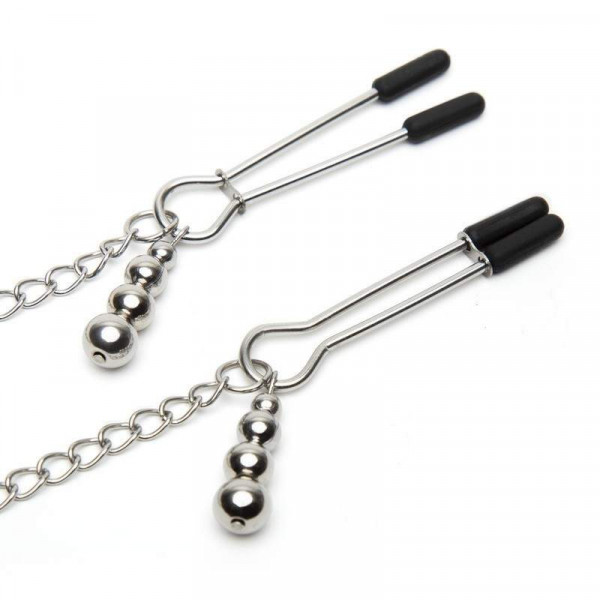 Зажимы на соски на металлической цепочке позволят испытать полный спектр неверотяных ощущений от стимуляции груди! Силиконовые наконечники нежно захватывают сосок, а регулировка степени сжатия позволяет экспериментировать с ощущениями. На каждом зажиме расположен металлический утяжелитель, который значительно увеличивает яркие переживания