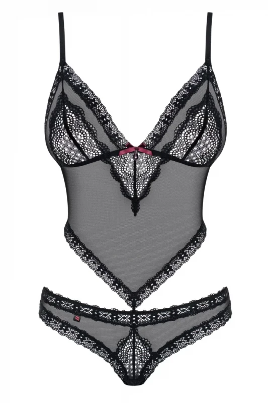 Боди "Obsessive" имитация топа и трусиков, черное, L/XL