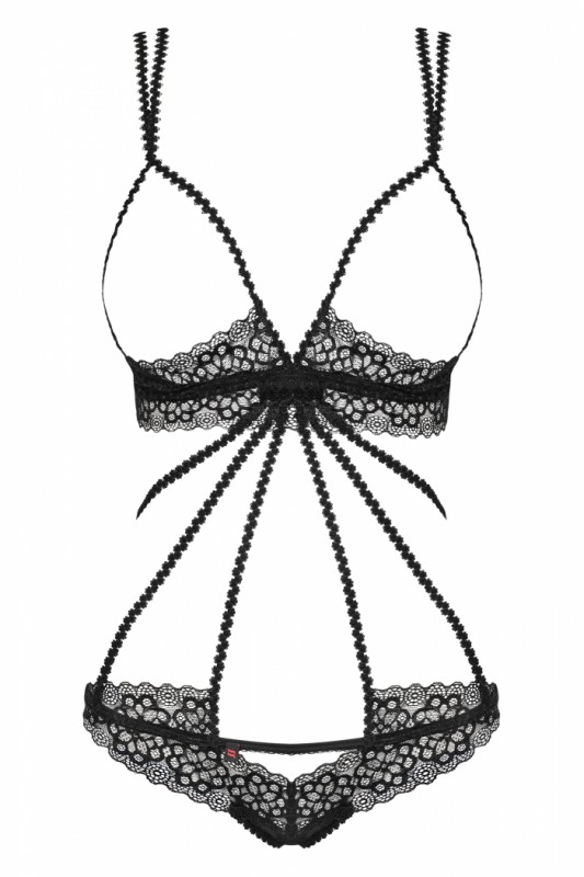 Боди с открытым бюстом "Obsessive Liferia" черное, S/M