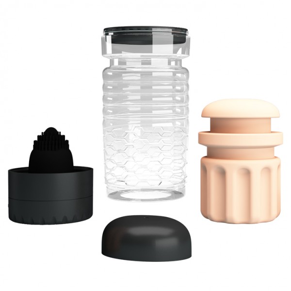 Колба мастурбатора выполнена из ABS-пластика и закрыта плотно крышкой. При вскрытии, открывается потрясающая картина супер реалистичная вагина! Далее, пройдя сквозь вагину, половой член, а именно головка, касается нежнейшей россыпи силиконовых шипов в центре которых силиконовый язычок! Язычок и шипы с вибрацией!
