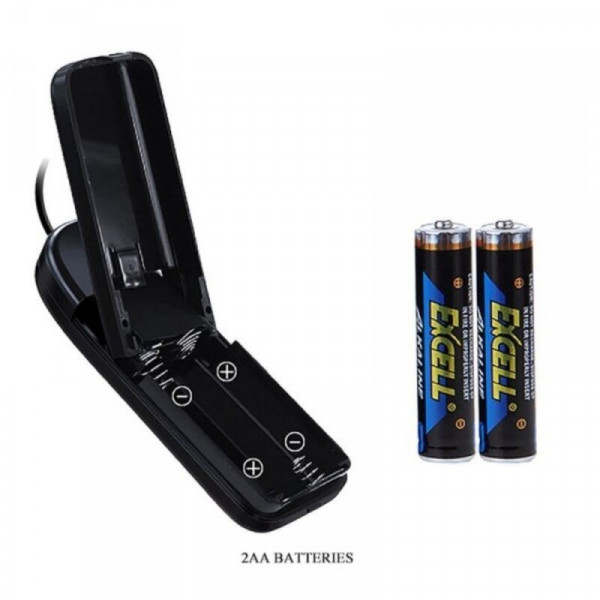 Работает от 2 батареек типа ААА. Батарейки в комплект не входят